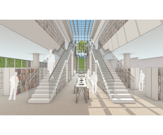 이를 통하여 자료열람공간, 문화교육공간, 업무관리공간의 유기적 관련성과 개별 독립성을 확보하였다. 문화교육동은 인지성 확보를 위해 구름 위(Up in the clouds)에 있는 매스를 계획하였다.