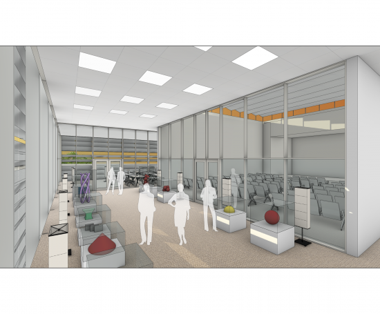 이를 통하여 진입한 지하층의 공용로비는 각 시설을 연계해주고 지역민이 모일 수 있는 거점으로써 도서관 자리매김의 중심공간이 된다.